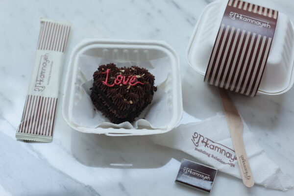 Brown chocolate heart shaped bento cake in hazelnut flavour
