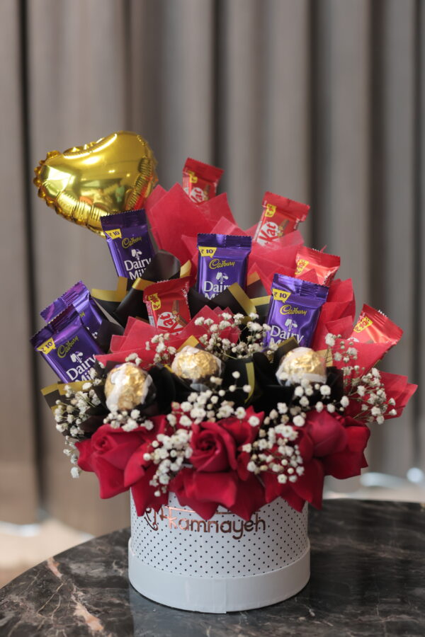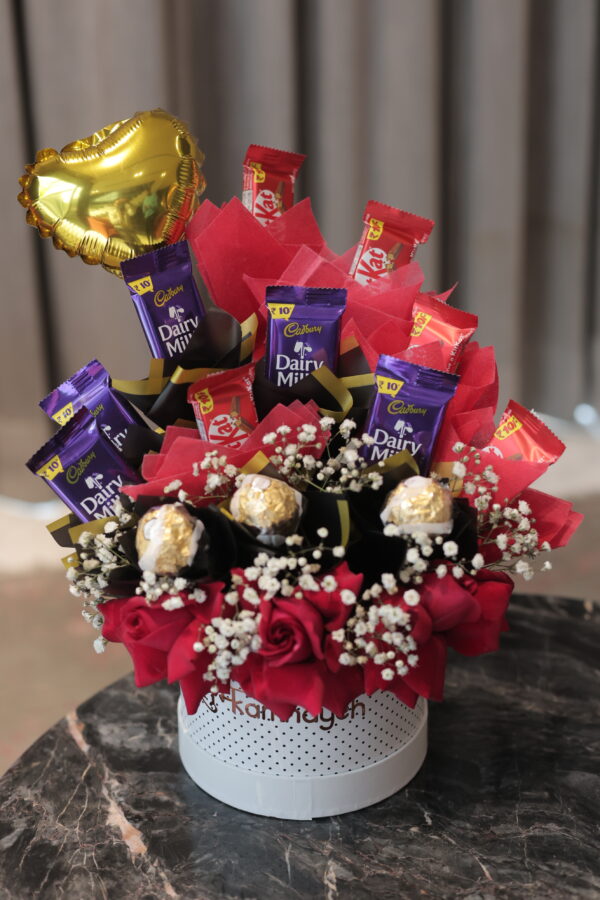 An elegant Valentine box of red roses and assorted chocolates. Perfect for someone who appreciates subtle luxury and meaningful gestures of love.