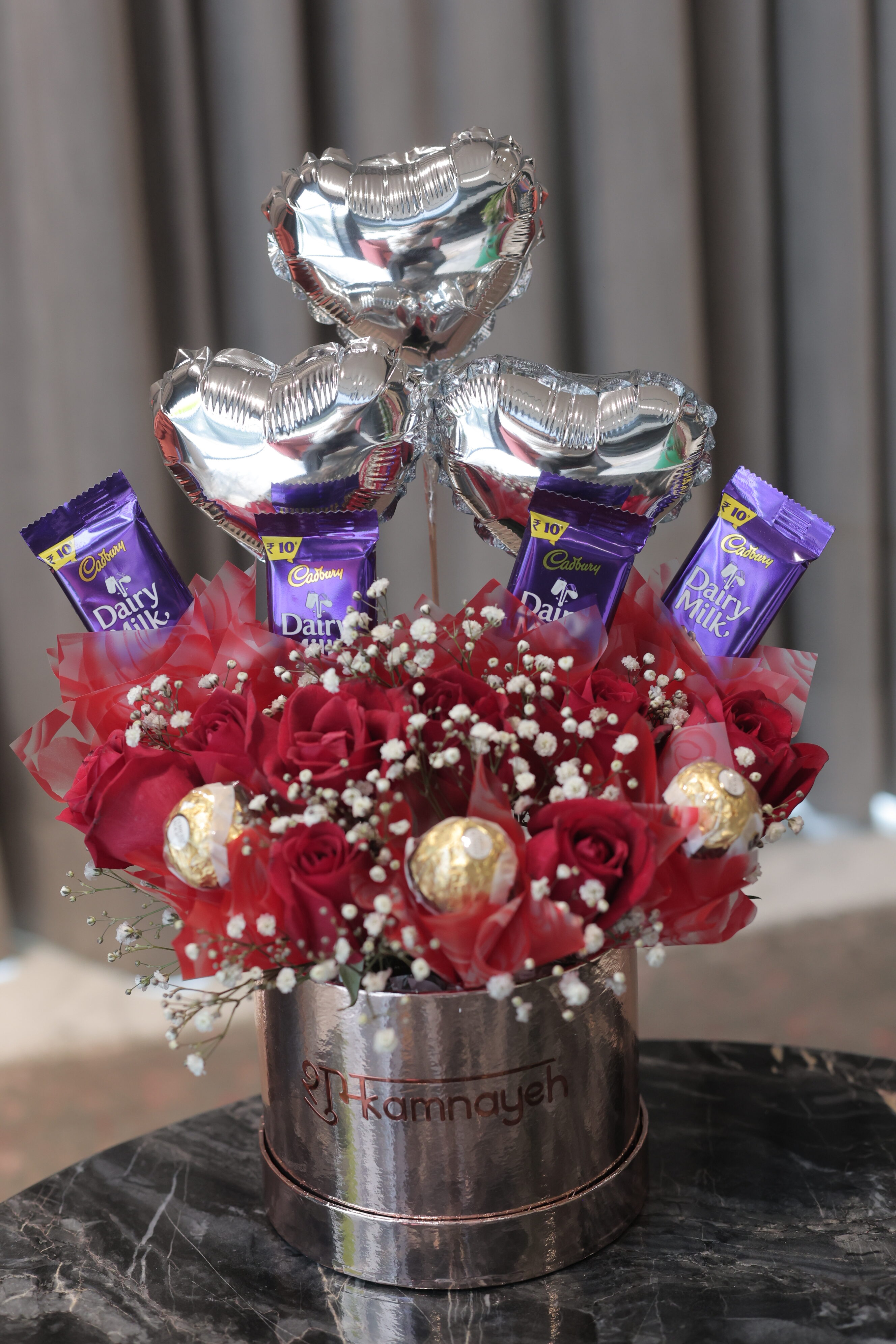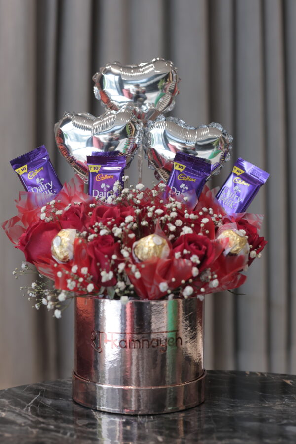 A heart-stealing arrangement of red roses and chocolates, made for romantic surprises. Ideal for Valentine’s Day, anniversaries, and love-filled celebrations.