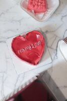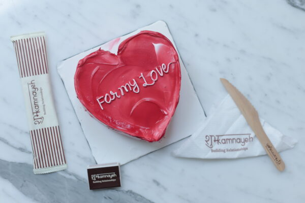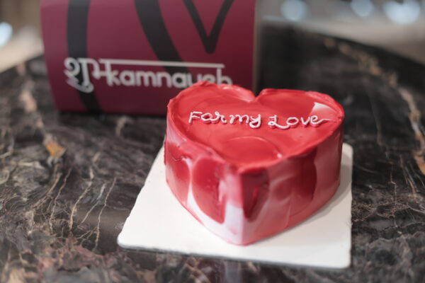A rich chocolate Valentine cake in shades of red with a heart-shaped design. Made to celebrate love, romance, and togetherness.